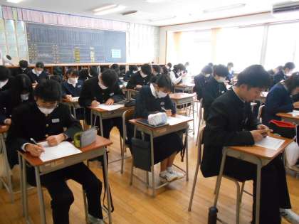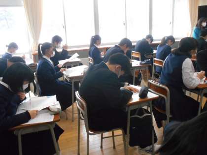 理科の授業では、復習のワークシートに取り組みました。理解が進んでいないところは、遠慮せずに質問しましょう。