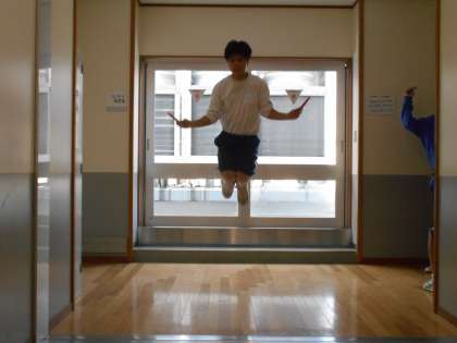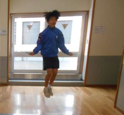 男子ソフトテニス部は、縄跳びを使ったトレーニングをしており、中には3重跳びの名手もいました。すごいです。