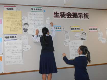 生徒玄関エコスペースの生徒会掲示板に、これから予定している活動が貼り出されました。残り2か月となりましたが、「繋がって委員会」が100%になって終われるように、最後まで協力してやりきりましょう。