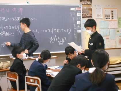 道徳の授業では、「『どうせ無理』という言葉に負けない」という教材を使って、自分の可能性やあきらめずに挑戦することについて意見を交換しながら、考えを深めていきました。