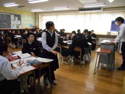 道徳の授業では、いじめ問題の教材を使って、いじめが起こる原因を考えるなど、いじめをなくすためにはどうしたらよいのか、いろいろな側面から考えました。