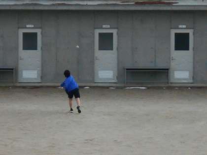 野球部とソフトボール部は、ピッチングやバッティングの練習をしていました。