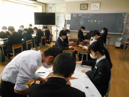 理科の授業の様子です。グループになって、教え合いをしながら復習をしました。この時間がほっとするようです。