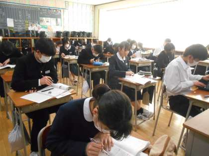 社会の授業の様子です。とにかく復習問題に毎日取り組み、学習内容を定着させていきましょう。