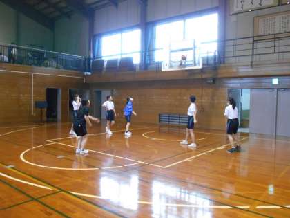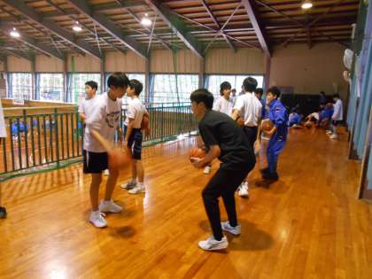 バスケットボール部の様子です。コートいっぱい走り込みながら、シュート練習もしました。