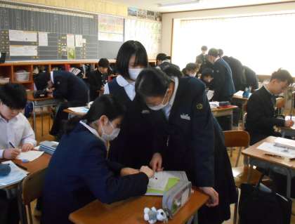 理科の授業では、地震が発生した際のP波の速さやS波の速さ、震源からの距離等を求めました。能登半島地震のこともあり、より自分事として学べたのではないでしょうか。