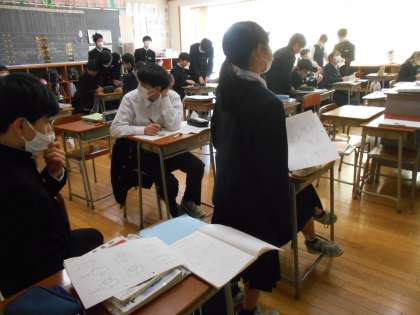 理科の授業では、回路の問題に取り組んでおり、あちこちで教え合いが始まっていました。