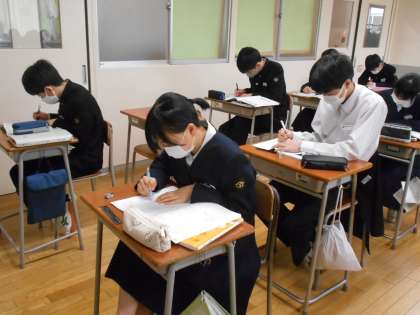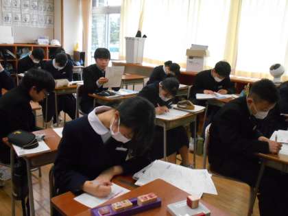 数学の授業では、復習プリントに取り組みました。学年末評価に向けて、家でも見直しておきましょう。