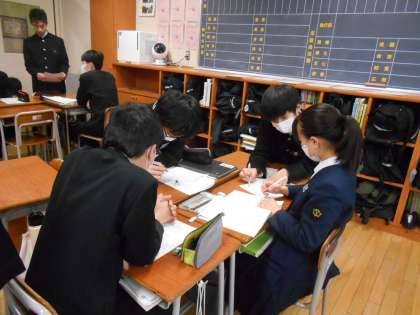 数学の授業では、課題を学び合いで乗り越える時間でした。知恵を出し合い、解決できたでしょうか。