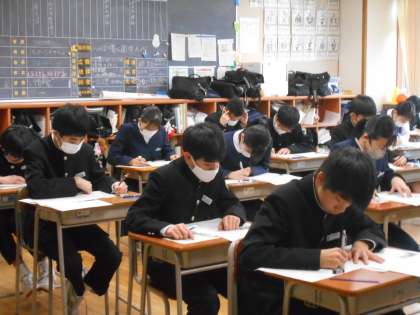 1日目の今日は、理科・国語・技術家庭の3教科に取り組んでいます。各教科で実験や実技、課題発表等で取り組んだことを思い出しながら、問題に取り組めたでしょうか。