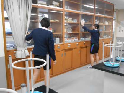 6限に、3年間過ごした校舎の環境整備を行いました。体育館、生徒玄関周辺、特別教室、窓など普段時間をかけられない場所を、隅々まで丁寧に掃除しました。清掃しながら、その場所で行った授業や思い出を振り返っている生徒もいました。感謝の思いをもち、残り少ない日々を一日一日大切に過ごしてほしいと思います。