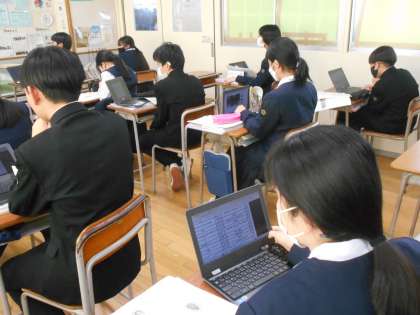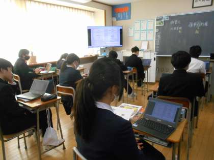 社会の授業では、テストの見直しを行い、文字の間違い等についても注意がありました。