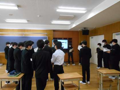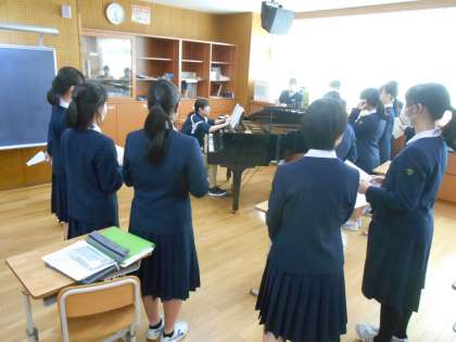 音楽の授業では、合唱の練習をしました。各パートの声を大切に、よりよいハーモニーをつくりましょう。