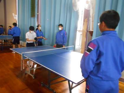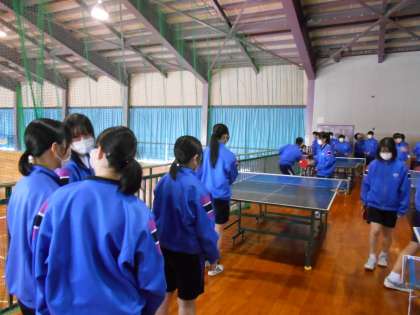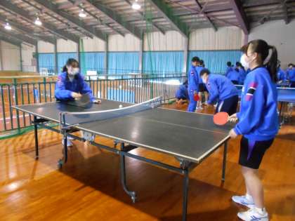 保健体育の授業では、交代で卓球台を使い、楽しそうに取り組んでいました。
