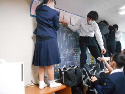 ほうきのゴミを取ったり、掲示物を外したりしている人もいました。「3年間どうだった?」と聞くと、ほとんどの人がみんな「あっという間でした」と答えていました。