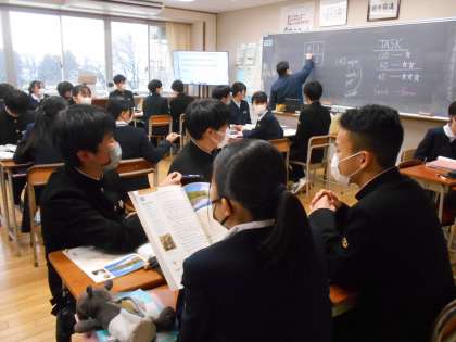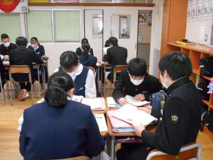 英語の授業では、本文の音読練習に取り組みました。分担した箇所以外のところも、読めるように練習をしておきましょう。