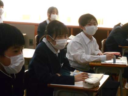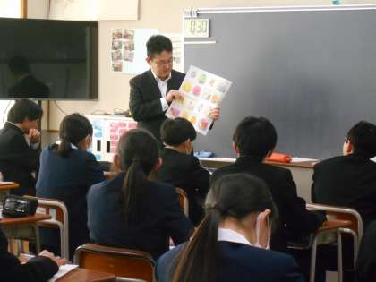「古都の雅、菓子の心」という教材を使って、日本の伝統文化の継承について考えました。先生の問いに対して、活発な発言があり、日頃から自分の意見を安心して出せる雰囲気があることが伝わってきました。