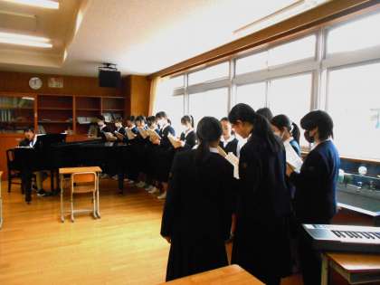音楽の授業の様子です。卒業式の歌の練習を頑張っています。