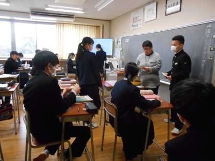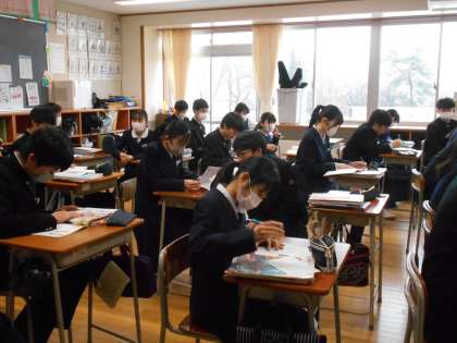 英語の授業では、これまでに取り組んだ小テストが返されました。もう一度家で取り組み、覚えているかどうか確かめるとよいですね。