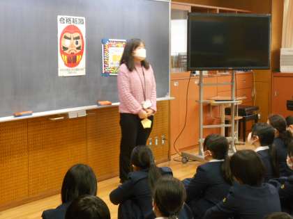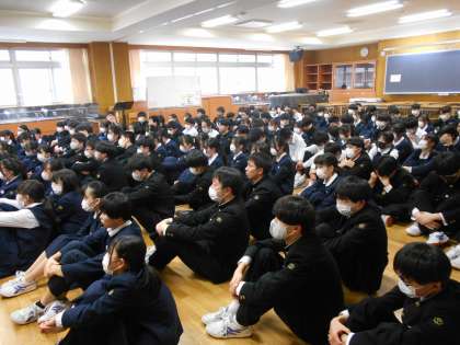 6限に県立一般入試に向けた激励会を行いました。校長先生からは、緊張をほぐすために深呼吸すること、焦らずに一問一問落ち着いて解くこと、そして、受検校を目指す強い気持ちをもって最後まで粘り強く取り組むことが良い結果にもつながるのだという、激励のお言葉をいただきました。久保先生からも励ましの言葉とともに、「輝きお守り」を一人ひとつずつ受け取りました。体調を整えて、二日間力を尽くしてきてほしいと思います。