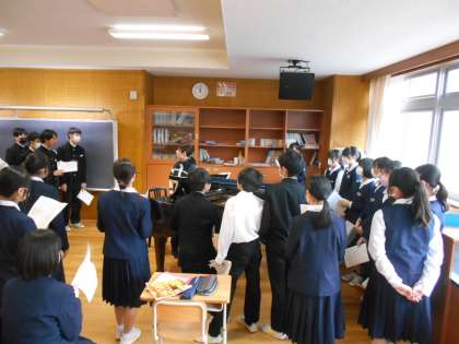 音楽の授業では、卒業式の歌の練習が佳境に入っています。卒業式当日、心を込めて歌えるようにみんなで気持ちを合わせて歌いましょう。