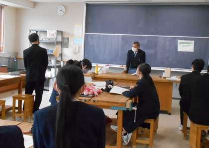 その学科ならではのカリキュラムや実習、部活動や資格の取得についても聞くことができました。今日は8校の高校から来てもらいましたが、しっかりと自分の学校について話をしたり、質問に答えたりする先輩の姿に、自分が高校生になったときはどうなっているのかと想像しながら聴いていたのではないでしょうか。今日の話をぜひ進路選択に生かしていきましょう。卒業生の皆さん。本当にありがとうございました。