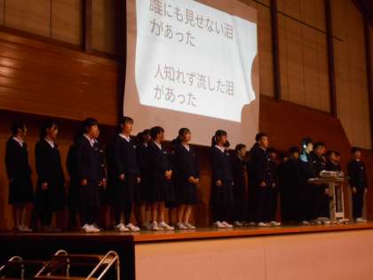 歌を歌ったクラスもありましたが、選んだ曲の歌詞が、これまでを思い出させるよい選曲でした。途中で先生達も参加する場面もあり、大いに盛り上がりました。