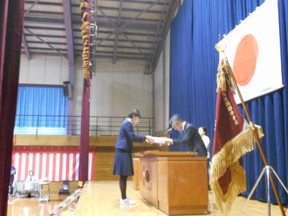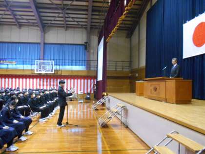 記念品には、今後責任をもって物事に当たる心構えの意味を込めて印鑑が贈られました。生徒代表からは、2万人を超える本校同窓会の仲間になることを誇りに思い、卒業後も南中プライドをもって進んでいく決意が語られました。