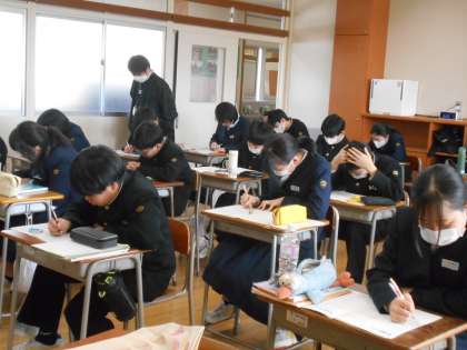 数学の授業では、今年度のまとめのプリントに取り組みました。苦手な分野はなかったでしょうか。