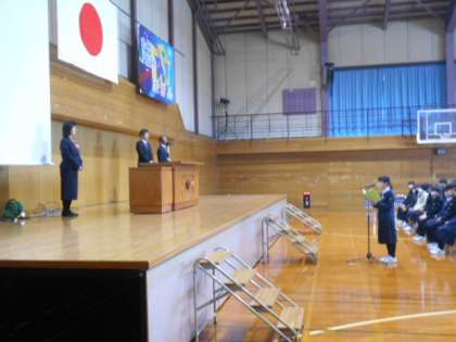 3月22日(金)離任式、退任式 公開日 2024/03/22 更新日 2024/03/22 南中NEWS 今年度をもって離任することが決まっている3名の教職員の離任式が行われました。 代表生徒からは、それぞれの先生の印象に残っている言葉や関わりが話され、感謝が述べられました。次のステージでも充実した生活となるよう、願っています。