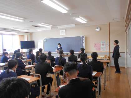 学活では、自己紹介を行いました。新たな出会いを大切に、たくさんの人と関わってほしいと思います。