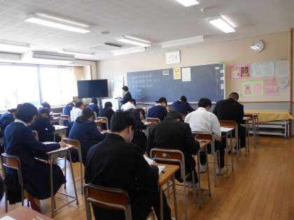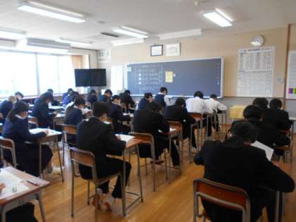 中教研学力調査1日目は、国語、英語、理科でした。休み時間には、ノートやワーク等を見直し、これまで学習したことを復習して臨みました。明日の教科も頑張りましょう。