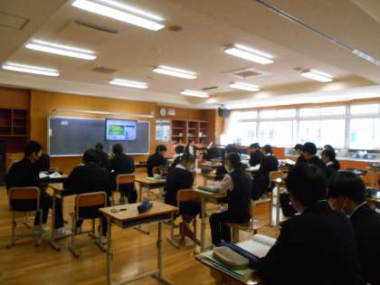 音楽では新しい合唱曲を聴いて練習に取り組んでいました。