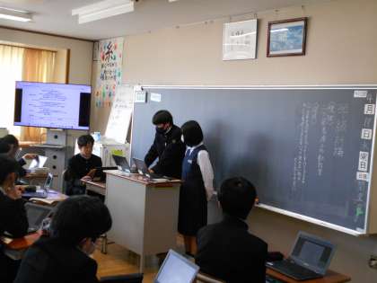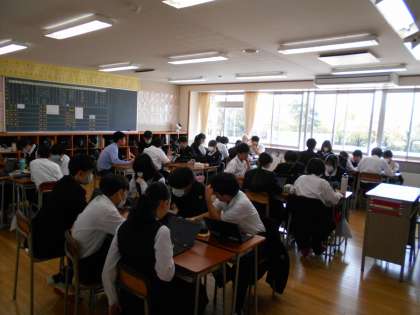 前期生徒会の執行部及び専門委員会の活動計画について、学級討議を行いました。計画案の説明が終わった後に、班で意見や質問を考えているクラスもありました。