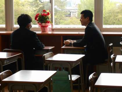 4月から始まった中学校生活のことについて気になることを相談しています。
