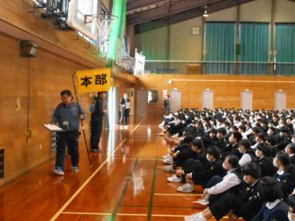本日6限、今年度初めての避難訓練を行いました。今回は、家庭科室からの出火を想定して、体育館に避難しました。いつ、どんな状況で火災が発生しても、教職員と生徒が適切に対処できるようにするためには、訓練が大切です。生徒たちは私語をせず、真剣に取り組んでいました。今後も様々な想定で、訓練を実施する予定です。