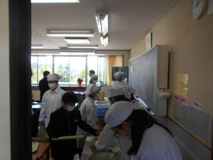 入学してから3週間。給食の準備もだいぶん慣れてきたようです。