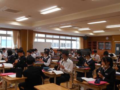 理科、英語、音楽の様子です。音楽は、リコーダーの練習をしていました。