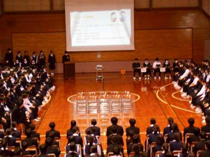 5、6限に生徒総会を行い、生徒会執行部や各専門委員長から前期活動計画案の説明がありました。執行部の活動テーマ「一人一人が主人公!〜南中の成長を目指して〜」を軸に、南中生が様々な場面で活躍できるように、しっかりと活動内容が錬られていました。