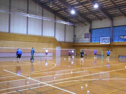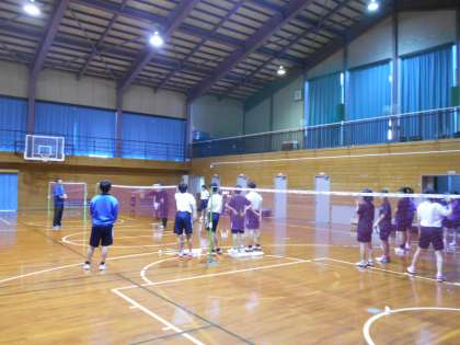 体育館では、バドミントン部が活動中でした。