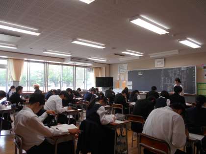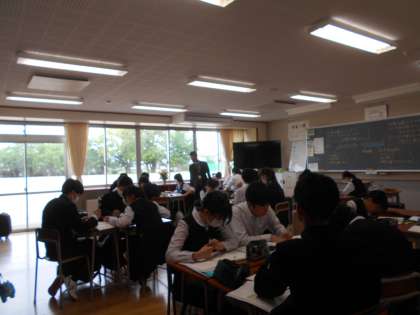 修学旅行前日の3年生。落ち着いて授業に臨んでいます。