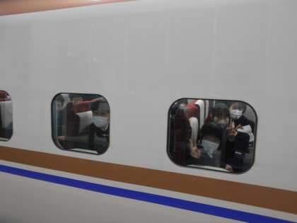 5月8日(水) 修学旅行(新幹線の窓から) 公開日 2024/05/08 更新日 2024/05/08 3年生 今日は朝の集合時刻が早かったため、集合直後は眠そうな顔も見られましたが、ホームに移動して、新幹線に乗車してからは、表情もほぐれて笑顔が見られました。見送りの教員にも元気に手を振ってくれました。いよいよ旅の始まりです。 写真を掲載しての活動報告は、帰校後に「修学旅行ダイジェスト」としてご紹介する予定です。