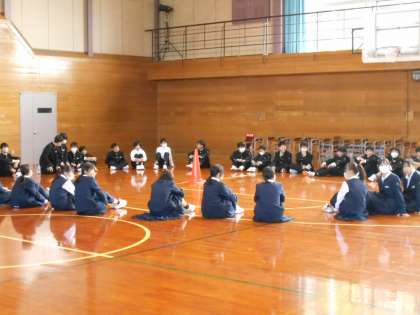 4限目の総合の時間に、運動会の団に分かれて団結力を高めるレクリエーションをしました。