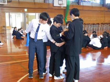 「指壺キャッチ」「猛獣狩り」「人間知恵の輪」の3つです。どの活動も盛り上がり、協力して活動していました。
