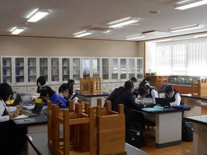 美術部は作品制作中でした。Chromehbookも活用して、各自が集中して取り組んでいました。(写真左)