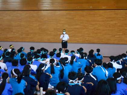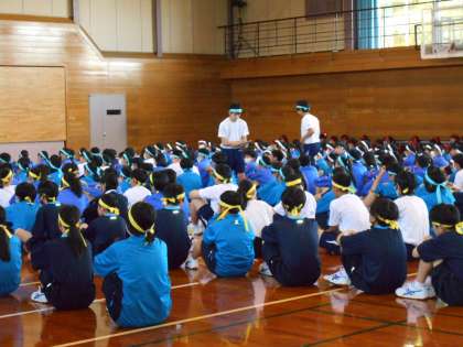 修学旅行中の3年生から託された、1、2年生だけの団別練習。5月30日(木)に開催予定の運動会に向けて、団演技の練習を行いました。