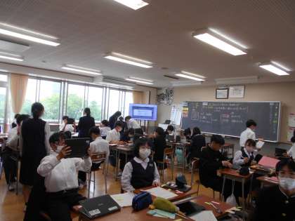 英語、数学の様子です。英語は、クロームブックも活用しながら、自己紹介をしていました。