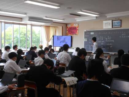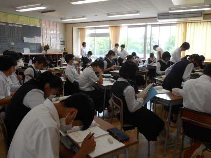 社会、数学の様子です。データを読み取ったり、分からないことを聴き合ったりと積極的に取り組んでいます。