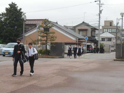 おはようございます。今朝は、どんよりとした空模様でしたが、生徒会規律委員会の活動「挨拶運動」で気分はさわやかです。チームを組んで自主的な参加で実施していきます。