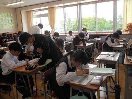 国語、理科の様子です。理科は、カタクチイワシ(煮干し)の解剖をして、どのような特徴があるかを観察していました。
